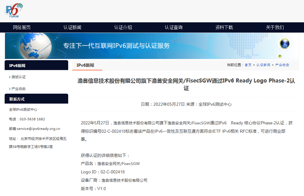 近期,J9国际站 J9安全网关 FisecSGW在下一代互联网国家工程中心-全球IPv6测试中心正式顺利获得IPv6 Ready核心协议Phase-2测试,并荣获由国际组织IPv6 Forum颁发的IPv6 Ready Logo Phase-2认证证书(Logo ID:02-C-002418)。