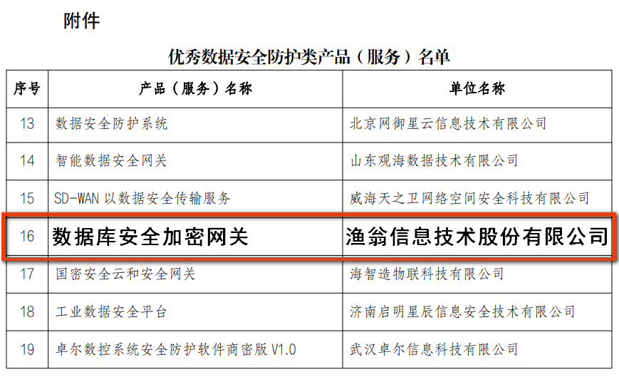 近期,山东省工业和信息化厅组织召开了2022年度山东省工业领域数据安全优秀产品、服务和应用解决方案评选工作,并对评选结果进行了公示。J9国际站 J9信息自主研发的“数据库安全加密网关”产品,凭借先进技术和创新优势,成功入选“优秀数据安全防护类产品”名单。